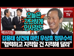 [포커스TV] 우상호 정무수석이 25년 6월 10일 국민의힘 김용태 비상대책위원장 접견을 마친 후 질의응답을 하고 있다.