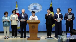 [포커스TV] 김선민 조국혁신당 대표 권한대행 및 당 지도부가 16일 서울 여의도 국회 소통관 기자회견장에서 심우정 검찰총장 사퇴 촉구 기자회견을 하고 있다.