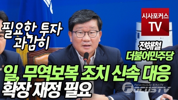 더불어민주당 원내대책회의-상임위간사단 연석회의 [포커스TV / 백대호 기자] 전해철 예결위 간사가 더불어민주당 원내대책회의-상임위간사 연석회의에서 필요한 투자는 과감하게 해야 한다고 말했다. 키워드 #전해철 #일본 #추경 #예결위 #국회 #무역보복 #재정 #시사포커스 #시사 #포커스 #포커스TV 백대호 영상기자 eoghsla707@naver.com 다른기사 보기 저작권자 © 포커스TV 무단전재 및 재배포 금지 당신만 안 본 뉴스 국민의힘 조배숙 "추미애, 나경원 두려워하는거 아닌가?" 국민의힘 조배숙 "추미애, 나경원 두려워하는거 아닌가?" 개의 댓글 회원로그인 작성자 비밀번호 댓글 내용입력 댓글 정렬 최신순 추천순 답글순 BEST댓글 BEST 댓글 답글과 추천수를 합산하여 자동으로 노출됩니다. 닫기 더보기 댓글삭제 삭제한 댓글은 다시 복구할 수 없습니다. 그래도 삭제하시겠습니까? 비밀번호 닫기 댓글수정 댓글 수정은 작성 후 1분내에만 가능합니다. 본문 / 400 비밀번호 닫기 내 댓글 모음 닫기 주요기사 국민의힘 조배숙 "추미애, 나경원 두려워하는거 아닌가?" 국민의힘 김문수 당대표 후보 긴급기자회견 개혁신당 이준석 대표 우원식 국회의장 예방 타인 질병까지 공격 소재로?...박선원 인신공격에 제대로 열받은 주진우 의문 목동 한강빌라 모르쇠?...국민의힘 곽규택 "후보자 지인이 배우자 전세금-인테리어 비용 내준거 아니냐?"...김민석 "내가 계약 주체 아니라 몰라" 민주당 김병기 원내대표·국민의힘 송언석 원내대표