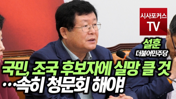 더불어민주당 최고위원회의 8월 26일 진행된 더불어민주당 최고위원회의에서 설훈 최고위원은 조국 후보자를 언급했다. 키워드 #설훈 #조국 #국민청문회 #청문회 #인사청문회 #자유한국당 #한국당 #단독청문회 #법무부장관 #수석 #조국딸 #고려대 #웅동학원 #시사 #포커스 #시사포커스 #시사포커스TV 장현호 영상기자 jahh123@hanmail.net 다른기사 보기 저작권자 © 포커스TV 무단전재 및 재배포 금지 당신만 안 본 뉴스 국민의힘 조배숙 "추미애, 나경원 두려워하는거 아닌가?" 국민의힘 조배숙 "추미애, 나경원 두려워하는거 아닌가?" 개의 댓글 회원로그인 작성자 비밀번호 댓글 내용입력 댓글 정렬 최신순 추천순 답글순 BEST댓글 BEST 댓글 답글과 추천수를 합산하여 자동으로 노출됩니다. 닫기 더보기 댓글삭제 삭제한 댓글은 다시 복구할 수 없습니다. 그래도 삭제하시겠습니까? 비밀번호 닫기 댓글수정 댓글 수정은 작성 후 1분내에만 가능합니다. 본문 / 400 비밀번호 닫기 내 댓글 모음 닫기 주요기사 국민의힘 조배숙 "추미애, 나경원 두려워하는거 아닌가?" 국민의힘 김문수 당대표 후보 긴급기자회견 개혁신당 이준석 대표 우원식 국회의장 예방 타인 질병까지 공격 소재로?...박선원 인신공격에 제대로 열받은 주진우 의문 목동 한강빌라 모르쇠?...국민의힘 곽규택 "후보자 지인이 배우자 전세금-인테리어 비용 내준거 아니냐?"...김민석 "내가 계약 주체 아니라 몰라" 민주당 김병기 원내대표·국민의힘 송언석 원내대표