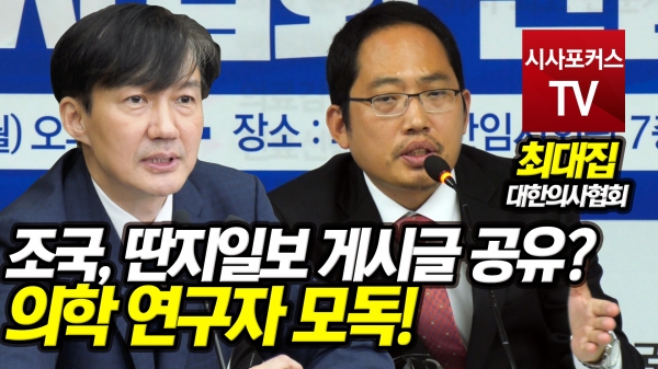 대한의사협회 조국 후보자 의료계 폄하에 대한 입장 발표 9월 2일 진행된 대한의사협회 긴급 기자회견에서 최대집 대한의사협회 회장은 조국 후보자를 향해 발언했다. 키워드 #조국 #대한의사협회 #의사협회 #최대집 #의료계 #논문 #조국딸 #의학 #의료 #장영표 #의학연구 #딴지일보 #법무부장관 #시사 #포커스 #시사포커스 #시사포커스TV 장현호 영상기자 jahh123@hanmail.net 다른기사 보기 저작권자 © 포커스TV 무단전재 및 재배포 금지 당신만 안 본 뉴스 국민의힘 조배숙 "추미애, 나경원 두려워하는거 아닌가?" 국민의힘 조배숙 "추미애, 나경원 두려워하는거 아닌가?" 개의 댓글 회원로그인 작성자 비밀번호 댓글 내용입력 댓글 정렬 최신순 추천순 답글순 BEST댓글 BEST 댓글 답글과 추천수를 합산하여 자동으로 노출됩니다. 닫기 더보기 댓글삭제 삭제한 댓글은 다시 복구할 수 없습니다. 그래도 삭제하시겠습니까? 비밀번호 닫기 댓글수정 댓글 수정은 작성 후 1분내에만 가능합니다. 본문 / 400 비밀번호 닫기 내 댓글 모음 닫기 주요기사 국민의힘 조배숙 "추미애, 나경원 두려워하는거 아닌가?" 국민의힘 김문수 당대표 후보 긴급기자회견 개혁신당 이준석 대표 우원식 국회의장 예방 타인 질병까지 공격 소재로?...박선원 인신공격에 제대로 열받은 주진우 의문 목동 한강빌라 모르쇠?...국민의힘 곽규택 "후보자 지인이 배우자 전세금-인테리어 비용 내준거 아니냐?"...김민석 "내가 계약 주체 아니라 몰라" 민주당 김병기 원내대표·국민의힘 송언석 원내대표