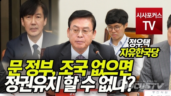 [포커스TV / 박상민 기자] 정우택 의원은 4일 자유한국당 당대표 및 최고위원-중진의원 연석회의에서 문 정부는 조국 없으면 정권 유지도 나라도 운영할 수 없는것이냐고 말했다.