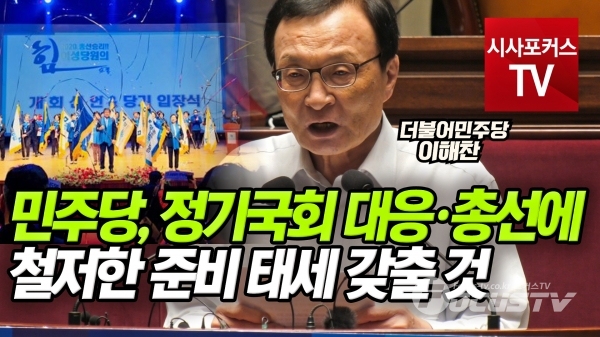 더불어민주당 정기국회 대비 국회의원 워크숍 [시사포커스 / 백대호 기자] 9월 18일 국회에서 진행된 더불어민주당 정기국회 대비 국회의원 워크숍에서 이해찬 당 대표가 정기국회와 내년 총선에 대해 발언했다. 키워드 #이해찬 #더불어민주당 #정기국회 #국회 #총선 #승리 #워크숍 #문제 #시사 #포커스 #시사포커스 #시사포커스tv 백대호 영상기자 eoghsla707@naver.com 다른기사 보기 저작권자 © 포커스TV 무단전재 및 재배포 금지 당신만 안 본 뉴스 국민의힘 조배숙 "추미애, 나경원 두려워하는거 아닌가?" 국민의힘 조배숙 "추미애, 나경원 두려워하는거 아닌가?" 개의 댓글 회원로그인 작성자 비밀번호 댓글 내용입력 댓글 정렬 최신순 추천순 답글순 BEST댓글 BEST 댓글 답글과 추천수를 합산하여 자동으로 노출됩니다. 닫기 더보기 댓글삭제 삭제한 댓글은 다시 복구할 수 없습니다. 그래도 삭제하시겠습니까? 비밀번호 닫기 댓글수정 댓글 수정은 작성 후 1분내에만 가능합니다. 본문 / 400 비밀번호 닫기 내 댓글 모음 닫기 주요기사 국민의힘 조배숙 "추미애, 나경원 두려워하는거 아닌가?" 국민의힘 김문수 당대표 후보 긴급기자회견 개혁신당 이준석 대표 우원식 국회의장 예방 타인 질병까지 공격 소재로?...박선원 인신공격에 제대로 열받은 주진우 의문 목동 한강빌라 모르쇠?...국민의힘 곽규택 "후보자 지인이 배우자 전세금-인테리어 비용 내준거 아니냐?"...김민석 "내가 계약 주체 아니라 몰라" 민주당 김병기 원내대표·국민의힘 송언석 원내대표