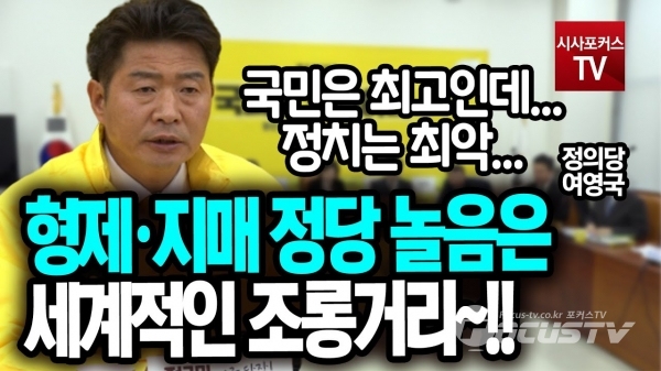 23일 정의당, 선거대책위원회 회의 [포커스TV / 성유나 기자] 여영국 공동선대위원장은 23일 정의당 선대위회의에서 형제·자매 정당 놀음이 세계적인 조롱거리고, 국민은 최고인데 정치는 최악이라고 말했다. 키워드 #여영국 #심상정 #정의당 #선대위 #총선 성유나 기자 youna920903@naver.com 다른기사 보기 저작권자 © 포커스TV 무단전재 및 재배포 금지 당신만 안 본 뉴스 국민의힘 조배숙 "추미애, 나경원 두려워하는거 아닌가?" 국민의힘 조배숙 "추미애, 나경원 두려워하는거 아닌가?" 개의 댓글 회원로그인 작성자 비밀번호 댓글 내용입력 댓글 정렬 최신순 추천순 답글순 BEST댓글 BEST 댓글 답글과 추천수를 합산하여 자동으로 노출됩니다. 닫기 더보기 댓글삭제 삭제한 댓글은 다시 복구할 수 없습니다. 그래도 삭제하시겠습니까? 비밀번호 닫기 댓글수정 댓글 수정은 작성 후 1분내에만 가능합니다. 본문 / 400 비밀번호 닫기 내 댓글 모음 닫기 주요기사 국민의힘 조배숙 "추미애, 나경원 두려워하는거 아닌가?" 국민의힘 김문수 당대표 후보 긴급기자회견 개혁신당 이준석 대표 우원식 국회의장 예방 타인 질병까지 공격 소재로?...박선원 인신공격에 제대로 열받은 주진우 의문 목동 한강빌라 모르쇠?...국민의힘 곽규택 "후보자 지인이 배우자 전세금-인테리어 비용 내준거 아니냐?"...김민석 "내가 계약 주체 아니라 몰라" 민주당 김병기 원내대표·국민의힘 송언석 원내대표