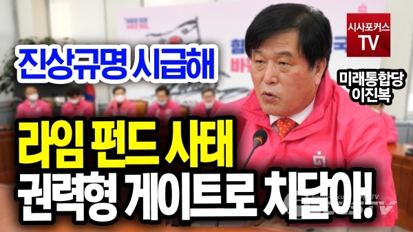 [포커스TV / 성유나 기자] 이진복 총관선대본부장은 25일 미래통합당 선거전략대책회의에서 라임 펀드 사태가 권력형 게이트로 치닫고, 재발방지를 위해서라도 철저한 진상규명이 대단히 시급하다고 말했다.