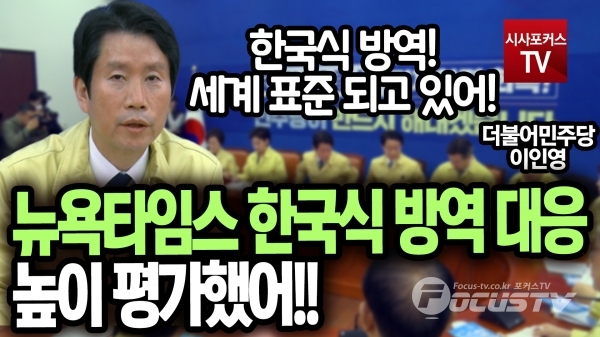 [포커스tv/성유나 기자] 이인영 총괄본부장은 26일 더불어민주당 코로나19국난극복위원회에서 뉴욕타임스에서 한국식 방역 대응을 높이 평가했고, 한국식 방역이 세계 표준이 되고 있다고 말했다.