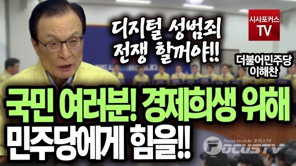 [포커스tv/성유나 기자] 이해찬 상임선대위원장은 27일 더불어민주당 코로나19국난극복위원회·선대위에서 국민 여러분! 경제희생을 위해서 민주당에게 힘을 보태주시고, 코로나19와 싸운 각오로 디지털 성범죄와의 전쟁을 멈추지 않겠다고 말했다.