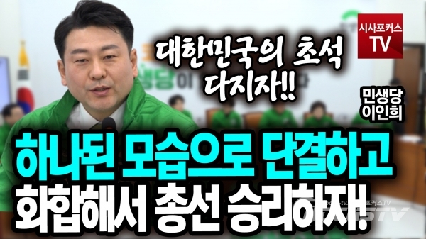 [포커스tv/성유나 기자] 이인희 최고위원은 30일 민생당 최고위원회의에서 하나된 모습으로 단결하고 화합해서 총선을 승리를 이뤄내고 더 나아가 새로운 대한민국의 초석을 함께 다져나가야 할 때라고 말했다.