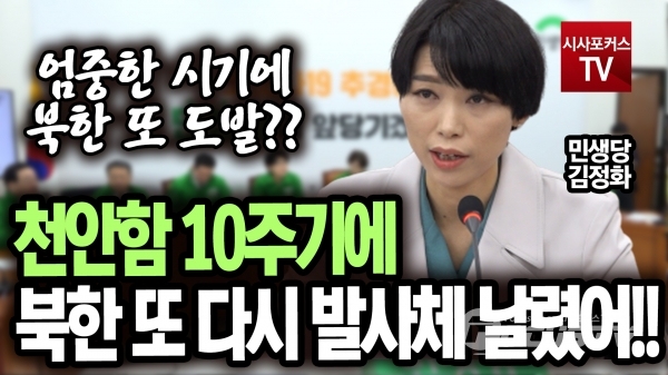 [포커스tv/성유나 기자] 김정화 당대표는 30일 민생당 최고위원회의에서 천안함 10주기에 북한은 또 다시 발사체를 날렸고, 엄중한 시기에 북한이 또 도발을 했다고 말했다.