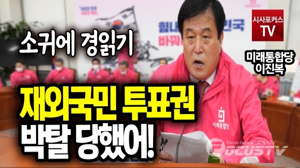 [포커스tv/성유나 기자] 이진복 본부장은 31일 미래통합당 선거전략대책회의에서 재외국민은 투표권을 박탈당하고, 여러가지 방안을 내놓았지만, 소귀에 경읽기라고 말했다.
