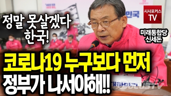 [포커스tv/성유나 기자] 신세돈 공동선대위원장은 31일 미래통합당 선거전략대책회의에서 코로나19 재난을 극복하기 위해서 정부가 나서서 뼈를 깎아야 하고, 국민들은 정말 한국 못살겠다고 말해고 있다고 말했다.