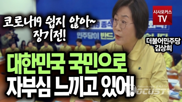 [포커스tv/성유나 기자] 김상희 질병본부장은 31일 더불어민주당 코로나19국난극복위원회 실행회의에서 국민이 대한민국 국민으로 자부심을 느끼고 있고, 코로나19는 장기전이 될 것 같다고 말했다.