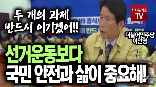 [포커스tv/성유나 기자] 이인영 총괄본부장은 31일 더불어민주당 코로나19국난극복위원회 실행회의에서 선거운동보다 국민 안전과 삶이 훨씬 중요하고 민주당은 국난극복과 총선이라는 두 개의 과제에 정성을 다하고 반드시 이기겠다고 말했다.