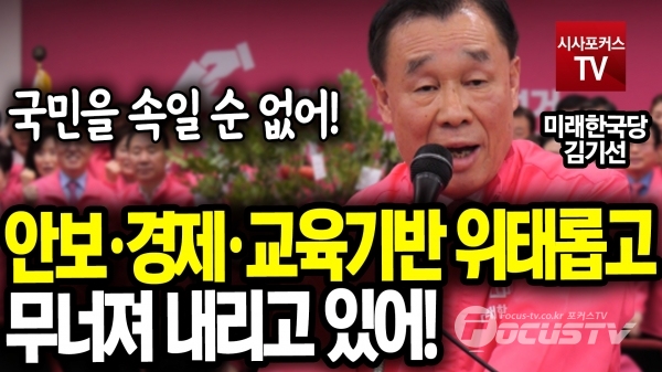 3월31일 미래한국당 선대위 출범식 [포커스tv/성유나 기자] 김기선 정책위의장은 31일 미래한국당 선대위 출범식에서 안보와 경제와 교육기반이 위태롭고 무너져 내리고 있고, 국민을 속일 순 없다고 말했다. 키워드 #김기선 #미랳하국당 #안보 #경제 성유나 기자 youna920903@naver.com 다른기사 보기 저작권자 © 포커스TV 무단전재 및 재배포 금지 당신만 안 본 뉴스 국민의힘 조배숙 "추미애, 나경원 두려워하는거 아닌가?" 국민의힘 조배숙 "추미애, 나경원 두려워하는거 아닌가?" 개의 댓글 회원로그인 작성자 비밀번호 댓글 내용입력 댓글 정렬 최신순 추천순 답글순 BEST댓글 BEST 댓글 답글과 추천수를 합산하여 자동으로 노출됩니다. 닫기 더보기 댓글삭제 삭제한 댓글은 다시 복구할 수 없습니다. 그래도 삭제하시겠습니까? 비밀번호 닫기 댓글수정 댓글 수정은 작성 후 1분내에만 가능합니다. 본문 / 400 비밀번호 닫기 내 댓글 모음 닫기 주요기사 국민의힘 조배숙 "추미애, 나경원 두려워하는거 아닌가?" 국민의힘 김문수 당대표 후보 긴급기자회견 개혁신당 이준석 대표 우원식 국회의장 예방 타인 질병까지 공격 소재로?...박선원 인신공격에 제대로 열받은 주진우 의문 목동 한강빌라 모르쇠?...국민의힘 곽규택 "후보자 지인이 배우자 전세금-인테리어 비용 내준거 아니냐?"...김민석 "내가 계약 주체 아니라 몰라" 민주당 김병기 원내대표·국민의힘 송언석 원내대표