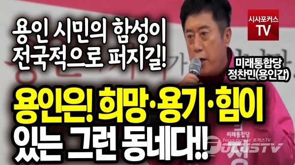 [포커스tv/성유나 기자] 미래통합당 용인갑 정찬민 후보가 2일 김종인 총괄선대위원장의 용인지역 후보지원 유세 현장에서 용인은 희망과 용기, 힘이 있는 그런동네라며 용인 시민의 함성이 전국적으로 퍼지길 바란다고 말했다.