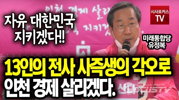 [포커스tv/성유나 기자] 유정복 남동구갑 후보는 3일 미래통합당 인천 현장 선거대책위원회 회의에서 13인의 전사들은 사즉생의 각오로 인천 경제를 살리겠고, 자유 대한민국을 지키겠다고 말했다.