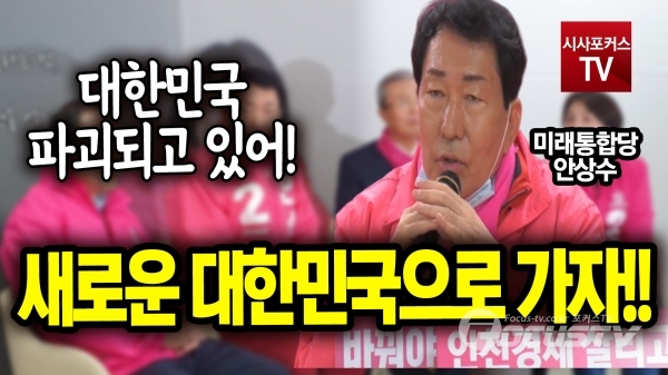 [포커스tv/성유나 기자] 안상수 후보자는 3일 김종인 총괄선대위원장 인천 중구 강화울진/동구 미추홀구 후보지원에서 대한민국이 파괴가 되고 있고, 이번 총선 승리로 새로운 대한민국을 가자고 말했다.