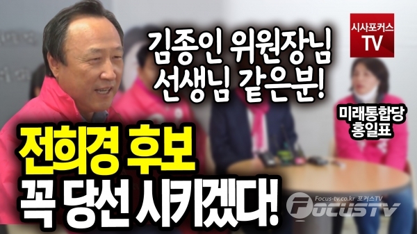 [포커스tv/성유나 기자] 홍일표 후보는 3일 김종인 총괄선대위원장 인천 중구 강화울진/동구 미추홀구 후보지원에서 전희경 후보를 꼭 당선 시키겠고, 김종인 위원장님은 선생님 같은 분이라고 말했다.