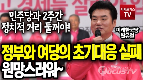 [포커스tv/성유나 기자] 원유철 미래한국당 당대표는 5일 대전 권역 선거대책위원회 회의에서 정부와 여당의 코로나19 초기대응 실패가 원망스럽고 민주당과 2주간 정치적 거리 둘거라고 말했다.