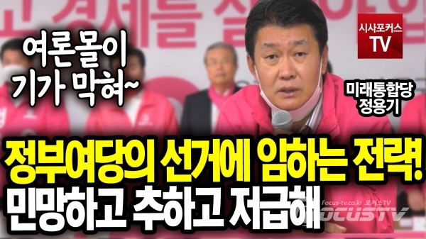 [포커스tv/성유나 기자] 정용기 대전 대덕구 후보자는 5일 대전 권역 선거대책위원회 회의에서 정부여당의 선거에 임하는 전략이 민망하고 추하고 저급하고 여론몰이가 아주 기가 막히다고 말했다.