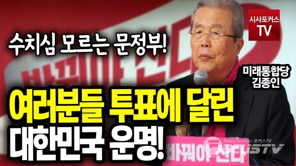 [포커스tv/성유나 기자] 김종인 총괄선대위원장은 6일 서울 광진구 후보 지원 유세에서 여러분들의 투표에 달린 대한민국 운명이고 수치심을 모르는 문정부라고 말했다.