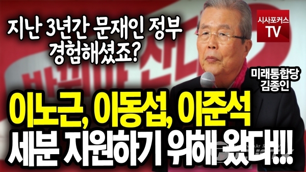 [포커스tv/성유나 기자] 김종인 총괄선대위원장은 6일 서울 노원구 후보 지원 유세에서 이노근, 이동섭, 이준석 이 세분을 지원하러 왔고, 지난 3년간 문재인 정권의 잘 경험 해보셨냐고 물었다.