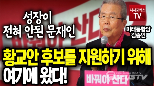 [포커스tv/성유나 기자] 김종인 총괄선대위원장은 6일 서울 종로 후보 지원 유세에서 황교안 후보를 지원하기 위해서 종로구에 왔고, 성장이 전혀 안된 문재인이라고 말했다.