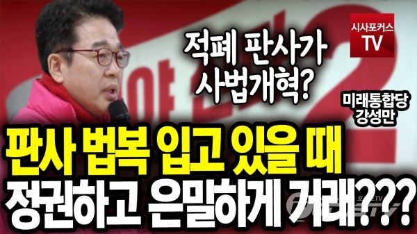 [포커스tv/성유나 기자] 강성만 후보자는 6일 미래통합당 서울 현장 선대위 회의에서 판사 법복 입고 있을 때부터 정권하고 은밀하게 거래를 했고, 적폐 판사가 사법개혁을 실시하는건 말이 안된다고 말했다.