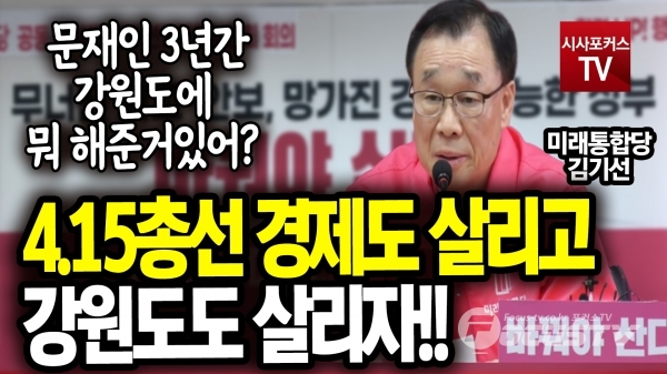 [포커스tv/성유나 기자]김기선 위원장은 7일 미래통합당 강원도 현장 선대위 회의에서 4.15총선 경제도 살리고 강원도도 살리고 문재인 대통령은 3년간 강원도에 뭐 해준것이 있냐고 물었다.