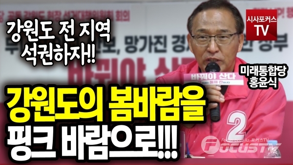 [포커스tv/성유나 기자] 홍윤식 후보자는 7일 미래통합당 강원도 현장 선대위 회의에서 강원도의 봄바람을 핑크 바람으로 바꾸고 강원도 전 지역 석권하자고 말했다.