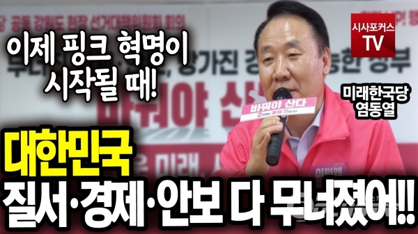 [포커스tv/성유나 기자] 염동열 사무총장은 7일 강원도 원주 후보 지원 합동 유세에서 대한민국의 질서와 경제와 안보가 다 무너졌고, 이제 핑크 혁명이 시작될 때라고 말했다.