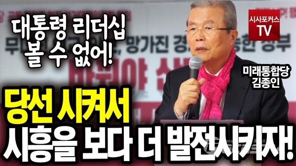 [포커스tv/성유나 기자] 김종인 총괄선대위원장은 8일 경기도 시흥시 후보 지원 유세에서 함진규 후보자를 당선 시켜서 시흥을 보다 더 발전시키고, 문재인 대통령의 리더십을 볼 수 없다고 말했다.