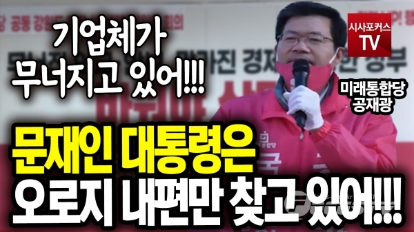 [포커스tv/성유나 기자]공재광 후보자는 8일 경기도 평택시 후보 지원 유세에서 문재인 대통령은 오로지 내편만 찾고 있고, 경제가 어려워 지면서 기업체가 무너지고 있다고 말했다.