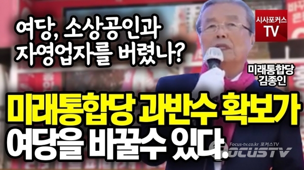[포커스TV / 임희경 기자] 김종인 총괄선대위원장 서울 도봉 후보 지원 유세에서 미래통합당 과반수 확보가 여당을 바꿀수 있다고 말했다. 임희경 기자 lhkroyal@naver.com 다른기사 보기 저작권자 © 포커스TV 무단전재 및 재배포 금지 당신만 안 본 뉴스 국민의힘 조배숙 "추미애, 나경원 두려워하는거 아닌가?" 국민의힘 조배숙 "추미애, 나경원 두려워하는거 아닌가?" 개의 댓글 회원로그인 작성자 비밀번호 댓글 내용입력 댓글 정렬 최신순 추천순 답글순 BEST댓글 BEST 댓글 답글과 추천수를 합산하여 자동으로 노출됩니다. 닫기 더보기 댓글삭제 삭제한 댓글은 다시 복구할 수 없습니다. 그래도 삭제하시겠습니까? 비밀번호 닫기 댓글수정 댓글 수정은 작성 후 1분내에만 가능합니다. 본문 / 400 비밀번호 닫기 내 댓글 모음 닫기 주요기사 국민의힘 조배숙 "추미애, 나경원 두려워하는거 아닌가?" 국민의힘 김문수 당대표 후보 긴급기자회견 개혁신당 이준석 대표 우원식 국회의장 예방 타인 질병까지 공격 소재로?...박선원 인신공격에 제대로 열받은 주진우 의문 목동 한강빌라 모르쇠?...국민의힘 곽규택 "후보자 지인이 배우자 전세금-인테리어 비용 내준거 아니냐?"...김민석 "내가 계약 주체 아니라 몰라" 민주당 김병기 원내대표·국민의힘 송언석 원내대표
