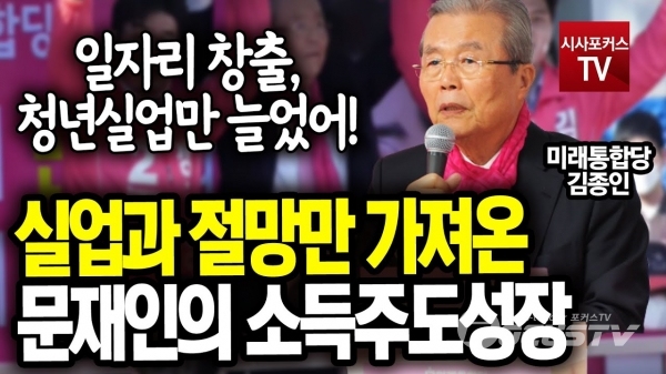 [포커스tv/성유나 기자] 김종인 총괄선대위원장은 9일 경기도 광명시 후보 지원 유세에서 실업과 절망만 가져온 문재인의 소득주도성장이고 일자리 창출은 청년실업만 늘었다고 말했다.