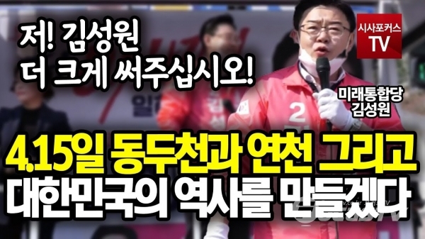 [포커스tv/성유나 기자] 미래통합당 김성원 후보가 지역구인 동두천에서 4.15일 동두천과 연천 그리고 대한민국의 역사를 만들겠다고 말하며 더 크게 써달라고 유권자들에게 지지호소를 했다.