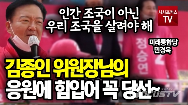 [포커스tv/성유나 기자] 미래통합당 민경욱 후보가 김종인 위원장님의 응원에 힘입어 꼭 당선되겠다고 말하며 인간 조국이 아닌 우리 조국을 살려야 한다고 말했다.