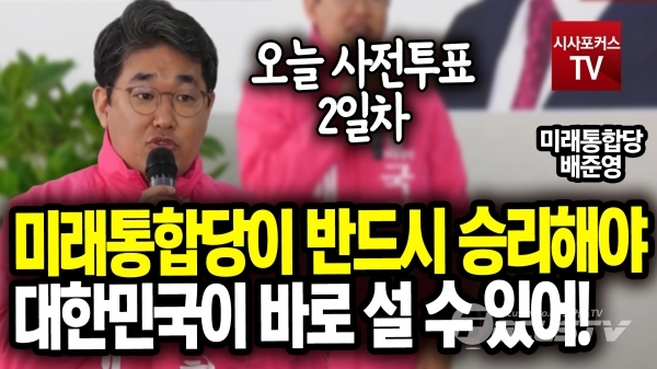 [포커스tv/성유나 기자]인천시 중구 강화옹진 배준영후보가 11일 미래통합당이 반드시 승리해야 대한민국이 바로 설 수 있다고 말했다.