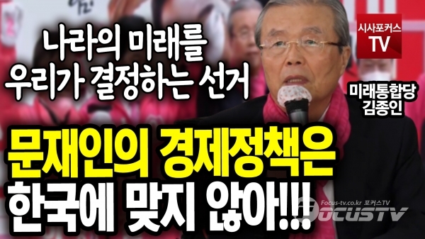 [포커스tv/성유나 기자] 김종인 총괄선대위원장은 11일 경기도 안양시 이필운 임호영 심재철 후보 지원 유세에서 문재인의 경제정책은 한국에 맞지 않고 나라의 미래를 우리가 결정하는 선거라고 말했다.