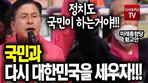 [포커스tv/성유나 기자] 황교안 후보자는 11일 김종인 총괄선대위원장 서울시 종로구 황교안 후보 지원 유세에서 국민과 함께 대한민국을 다시 세우자고 말했다.