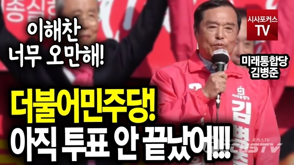 [포커스tv/성유나 기자] 김병준 후보자는 13일 세종시 (을) 후보 지원 유세에서 더불어민주당에게 아직 투표가 안 끝났고 이해찬 당대표는 너무 오만하다고 말했다.