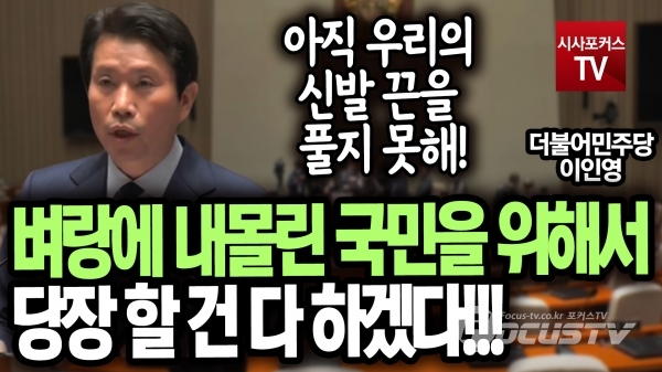 [포커스tv/성유나 기자] 이인영 원내대표는 20일 더불어민주당 의원총회에서 아직 우리의 신발 끈을 풀지 못하고 벼랑에 내몰린 국민을 위해서 당장 할 건 다 하겠다고 말했다.