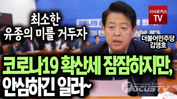 [포커스tv/성유나 기자] 김영호 부대표는 21일 더불어민주당 원내대표단-상임위간사단 연석회의에서 코로나19 확산세가 잠잠하지만, 안심하긴 일르고, 21대 국회에게 넘기기 전에 최소한 유종의 미를 거두자고 말했다.